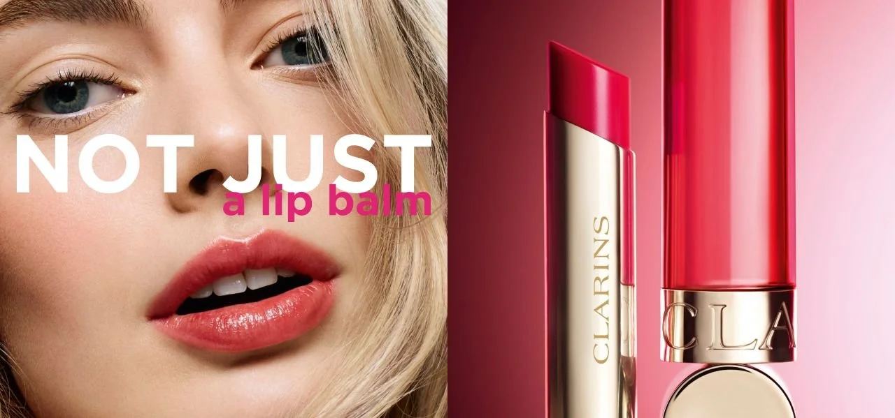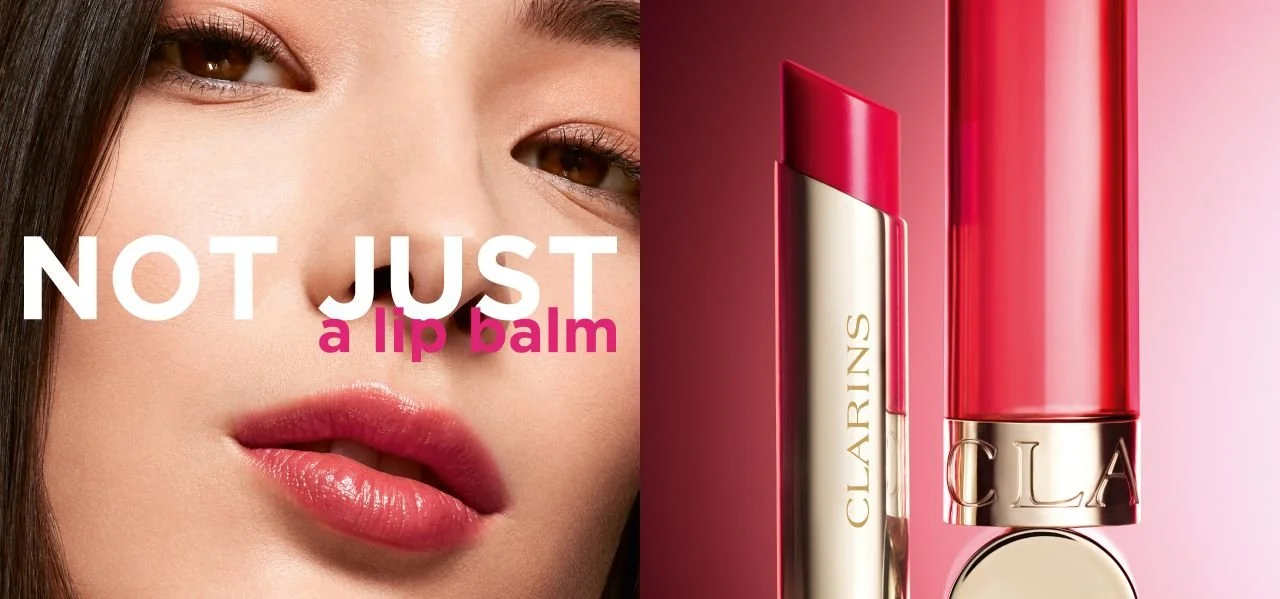 The grouped imagery creates a unified story that reflects Clarins’ broader lip strategy: skincare-powered makeup with a consistent identity.